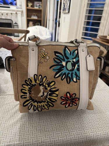 Vintage coach spring jute and leather embroidered bag