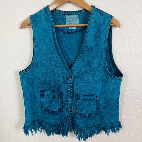 Vintage Sundance Women Large Vest Acid Wash Blue Denim Fringe Western Festival Womens Large See all photos for condition Measurements Pictured Vintage, Western, Boho, Cowgirl, Acid Wash Denim, Fringed, Made in USA, Retro, Coastal Cowboy, Festival Wear, Hippie, 90s Style