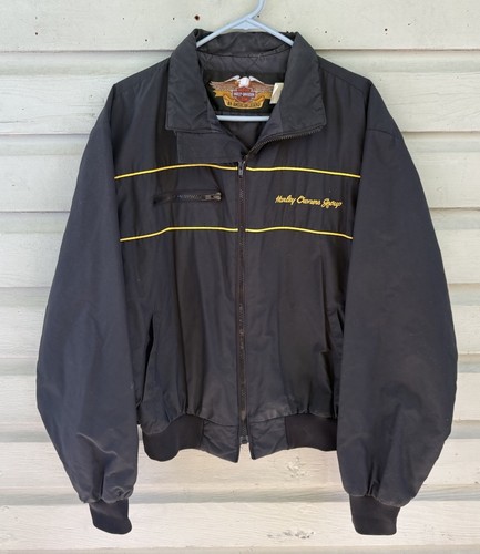 80s Harley-Davidson “Harley Owners Group” black full zip canvas Bomber Jacket. - Length - 25”. - Shoulders - 21 1/2” across. - Sleeves - 25 1/2” from shoulder. - Chest - 48” (24” across chest).