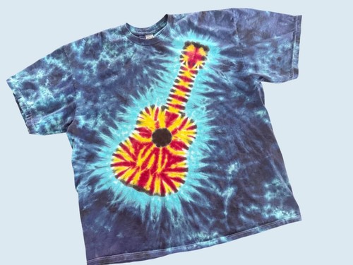 Cool vintage tie dye t shirt with tie dye guitar on front. Circa 90s / 00s. Made in a Gilden Hammer 100% cotton shirt. Pullover. Size 2 XL. Pre-owned and gently worn in really nice condition! Features: • retro, tie dye, guitar Size: Mens 2XL Condition: Pre-Owned Good