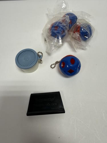 Tupperware Mini Vintage Shape O Ball Keychain 80s Red Blue Sorter Vintage Toy 1-blue canister 1-Crayon holder 4-plastic balls Three are unopened six pieces total