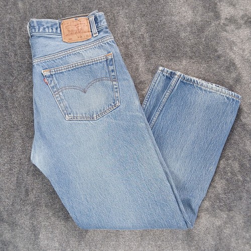 Vtg Levis 501 Jeans Mens Fits 36x28 Blue USA Made 90s Button Fly Distressed