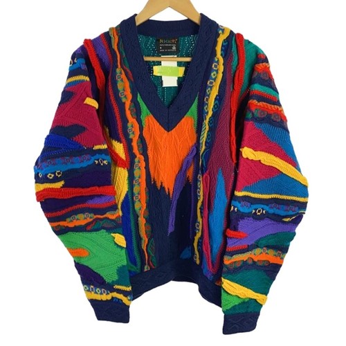 Vtg 3D V Neck Multicolor Cotton Knit Sweater Made In Australia