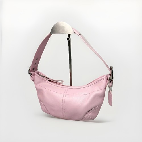 This vintage Coach Y2K shoulder bag accessory pouch is a stylish addition to any woman's wardrobe. Made of luxurious pink leather, this clutch exudes a retro charm with its unique design. Perfect for carrying essentials or as a statement piece to elevate any outfit, this accessory brings a touch of classic chic to any look.