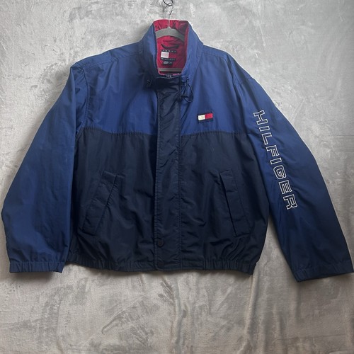 VTG 90’s Jacket Mens XL Spell Out Sleeve Sailing Hooded Box Logo
