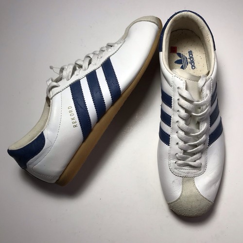 Vintage Rekord Retro Blue Stripe White Low Tennis Sneakers Mens 9.5 Samba
