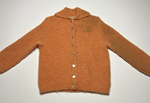 True Vintage 50s Bobbie Brooks Mohair Wool Cardigan Sweater Peach Size Small USA Some discoloration due to dust, however this should be able to fixed through dry cleaning.