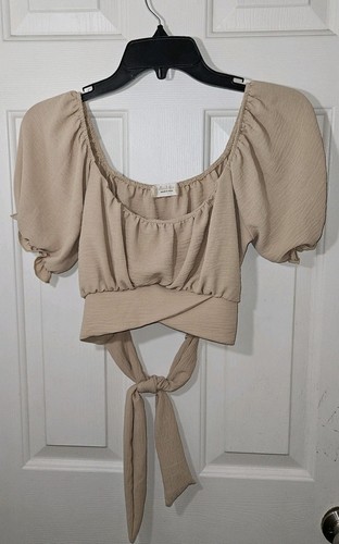 Vintage Y2K Altar’d State Cropped Top Ties In Back Beige Crinkly Cottage USA Sm Vintage 90's Y2K Crinkly Fabric Soft Elastic Neckline Excellent condition
