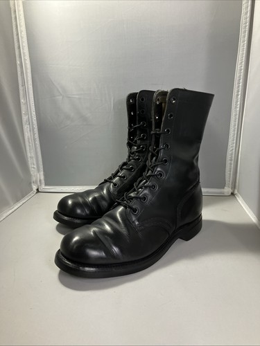 These vintage US Army boots from the 1960s are a stylish and historical choice for any man looking to make a statement. With a classic mid-calf shaft style and lace-up closure, these solid black boots feature Goodyear soles for added durability. Made of leather with a distinctive combat style, these boots are perfect for casual wear or for adding a touch of military flair to your outfit. Whether you're traveling, working, or simply looking for a rugged and timeless footwear option, these boots are sure to make a statement with their vintage appeal and unique design. Excellent vintage condition. Please look over photos. Thanks for viewing!