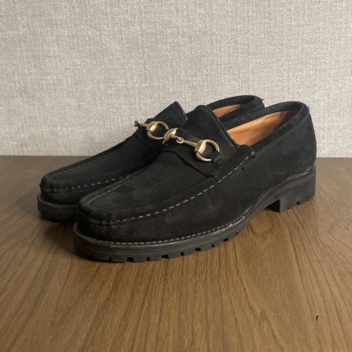 Horsebit Loafers Mens 7 Vintage Black Suede Lug Soles Authentic