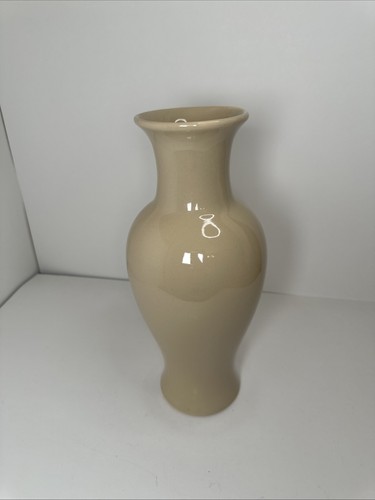 The Vintage Hager Beige Vase is a round ceramic piece with a classic white color, perfect for all occasions. Made in the late 20th century, this vase is a charming decorative collectible that adds a touch of elegance to any space. Easy to care for with just a damp cloth, this vase is ideal for adults looking to enhance their home decor with a timeless and stylish addition. Dimensions: 6x13
