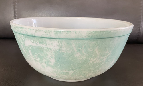 The Vintage Pyrex Mixing Bowl #403 in Primary Color Green is a nostalgic piece of American-made kitchenware from the mid 20th century. Made of milk glass with a vintage green color, this bowl is perfect for all occasions and adds a touch of retro charm to any kitchen. This bowl is pre-owned in good condition, some signs of color off outside of the bowl, see photos.