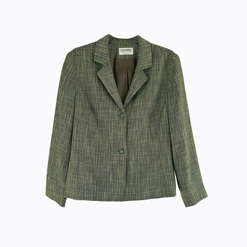 Crafted in the USA from a rich, olive green tweed, it features a relaxed, boxy silhouette that's ideal for layering. The notched lapels and two-button closure provide a sophisticated look, making it a versatile jacket for both office wear and casual outings.