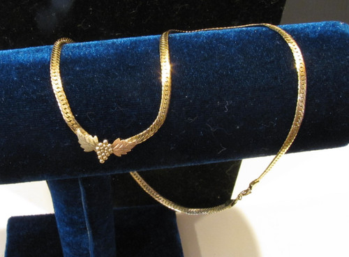 Very Stunning 14k Gold Filled~ V shaped Herringbone Chain necklace with grape cluster and leaves that is 17" long and. weighs 8.73g. Spring ring clasp works very well. The necklace is stamped 14K GF on each end of the chain.