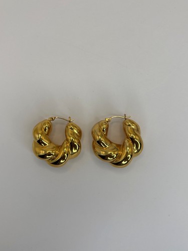 Details: Vintage Gold Tone Chunky Puff Twisted Hoop Earrings Croissant Style Condition: Good SKU: JW7-47