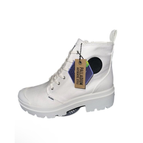 Step up your style with the Palladium Pallabase Twill in "Star White". Perfect for festivals, skating, or adding an edgy "grunge" vibe to your daily outfit. New With Box (NWB). These boots are in pristine, unworn condition.