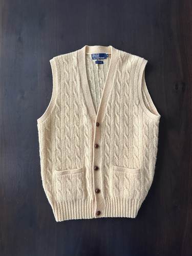 VTG 90’s Polo 100% Wool Yellow Cable Knit Button Front Vest Men’s M