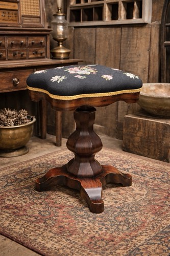 I was told that walnut or American black walnut for the center column the very bottom foot is cast-iron with a grain paint. See all pictures for details and condition and exact measurements.