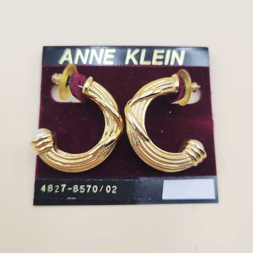 The Anne Klein gold tone textured hoop pierced earrings are a stylish and classic addition to any jewelry collection.