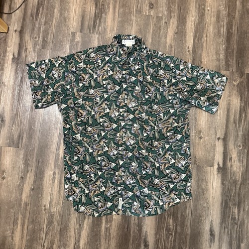 Vintage Button Up Shirt Men's XL Trout Flies AOP Short Sleeve