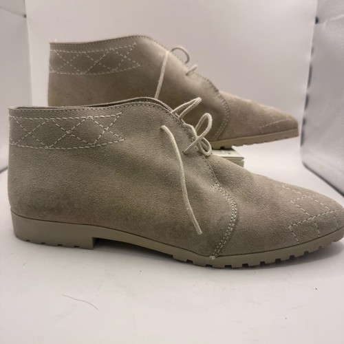 Buskens vintage suede ankle boots in excellent condition. Size 7.5 shoelaces and crisscross stitching a gray beige color real leather suede. Pointed toe