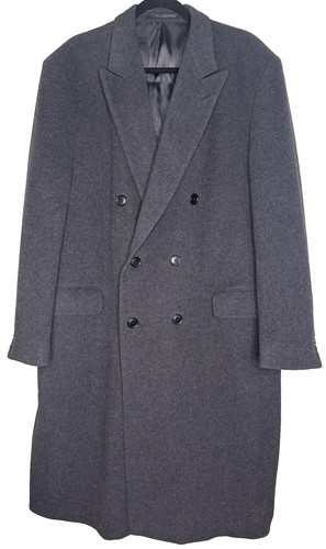 The coat is by Savoy Taylors Guild. It was woven in Italy and customized and sold in England in the 1990's. Has no size listed inside - I'm guessing this would fit an XL man. Condition (see photos): only a couple of issues I see, and neither of them are apparent unless you point them out.