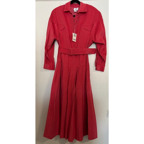 Loose fit. It has shoulder pads, but they can be easily removed. Color is pink, not red.