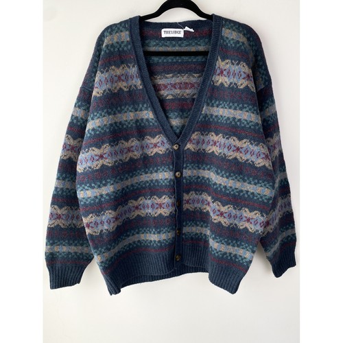 Vintage Wool Grandpa Cardigan XL The Lodge 90s Retro Oversized Style: Cardigan Department: Men Material: 100% Wool Neckline: V-Neck Fabric Type: Knit Type: Sweater Features: Oversized, Heavyweight, Button Front Pattern: Fair Isle Sleeve Length: Long Sleeve Tags: retro vintage eclectic grandpa cozycore alpine nordic fair isle ski wool winter vacation 90s oversized blokecore Condition: Excellent preowned condition! No known flaws! See all pictures for any signs of wear, as they are part of the description. Size: XL Measurements (all approximate and taken flat): Length: 29" Pit to pit: 26" Offers welcome! Smoke Free and Dog Friendly home! Ships next business day!