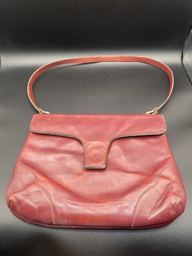 The Etienne Aigner Vintage Burgundy Purse is a classic shoulder bag in oxblood maroon, featuring a rectangular shape with a snap closure and gold hardware. Made of leather with a matte finish, this medium-sized handbag is perfect for any occasion. The maroon shoulder strap and burgundy exterior make it a stylish and timeless accessory for anyone who appreciates designer pieces from Germany. Lined with maroon fabric, this vintage bag exudes elegance and sophistication in a solid pattern. Shows some signs of age. *see photos. Missing the front clasp. ~Thanks for looking ✨ ~Wayward Finds 2011