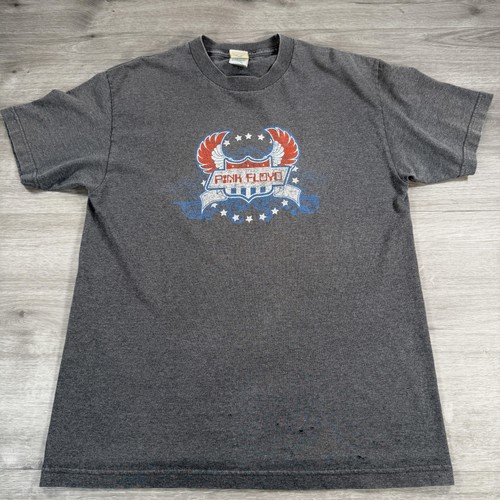 Design details: Front crest-style Pink Floyd logo graphic with wings, shield, scroll accents, and scattered stars in red, white, and blue. Product details: Pink Floyd band T-shirt printed on an Alstyle Apparel & Activewear blank, ideal for fans of classic rock.