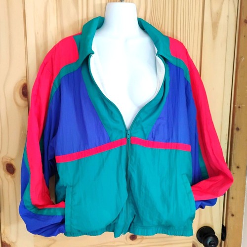 vintage Eagles Ridge Sport nylon track suit jacket. 80s/90s. Teal, blue, and red. Full zip. Size Large; measures 23.5 inches pit to pit, 23 inches to the top of the zipper and 27 to the back of the collar. Gently used, in excellent condition.