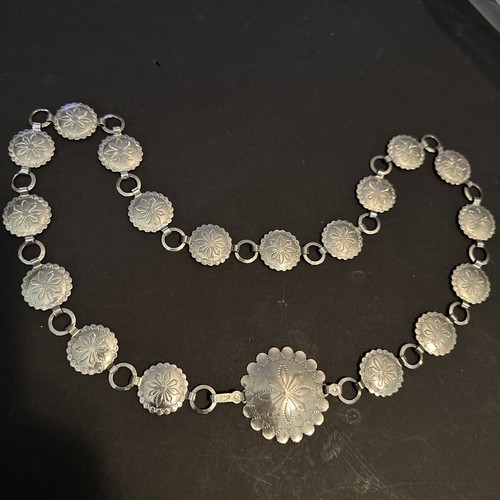 Vintage Silver Tone Floral Concho Link Belt Scalloped Medallions 34” long - $22 | Triply Vintage