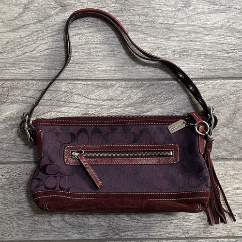 9363 Duffle Shoulder Hobo Bag Signature Purple Suede Monogram EUC Y2K VTG
