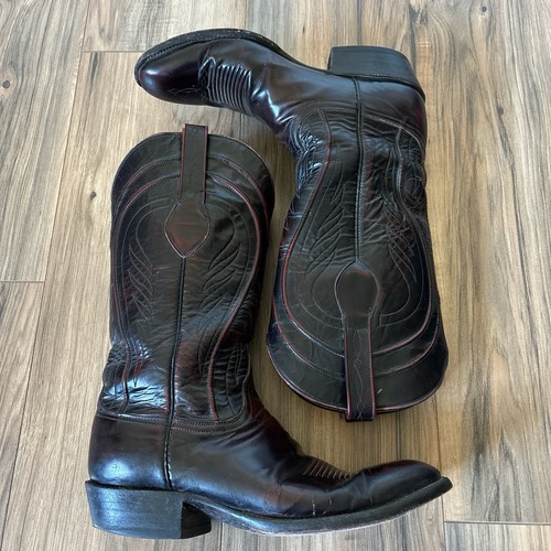 Lucchese Vintage Black Cherry Leather Western Cowboy Boots Mens 9.5D Classic