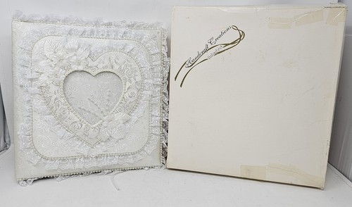 Off-White Lace Photo Album. This is pre-owned but in good condition and unused. A few pages have been fold at the top corner. The box does show a lot of wear. See the last few pictures for examples.