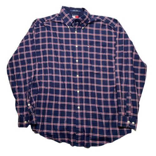 Vintage 90s Long Sleeve Button Down Plaid Shirt Blue Red