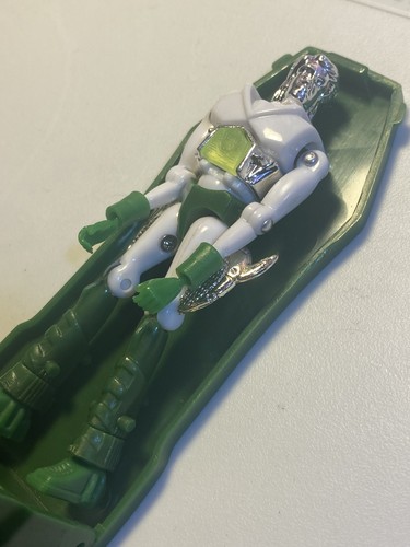 The product is a rare retro green coffin action figure from the Micronauts franchise, manufactured by Palisades in 2003. This vintage collectible stands at 8 inches tall and is made of plastic, representing a nostalgic piece from the 2000-2009 time period. The original, licensed reproduction features intricate details and is a sought-after item for fans of comic book heroes and collectors of action figures. Overall, this product is a unique addition to any toy and hobby collection, capturing the essence of the popular Micronauts series.