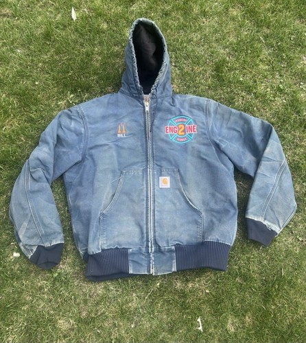 Vintage 80s Carhartt J06 Teal Blue Faded Distressed Jacket Mens M Quilt Lined Please see photos! Great vintage distressing and fading. Cool embroidery. One stain on the back. Measurements: 24.5 in pit to pit 26 in top to bottom