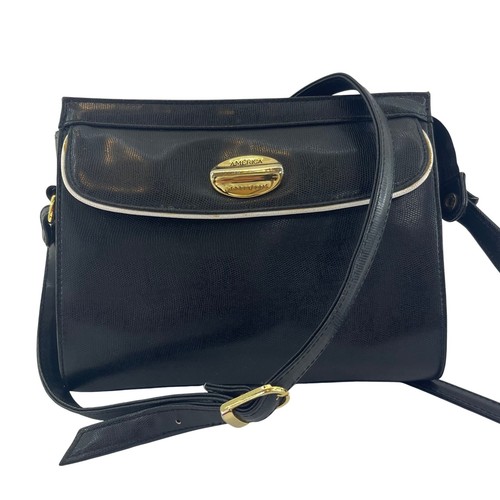 This minimalist 90s purse features a structured silhouette, smooth leather exterior, and signature gold tone oval Perry Ellis badge on the front flap. • Adjustable crossbody strap. • Era: Late 80s / Early 90s.