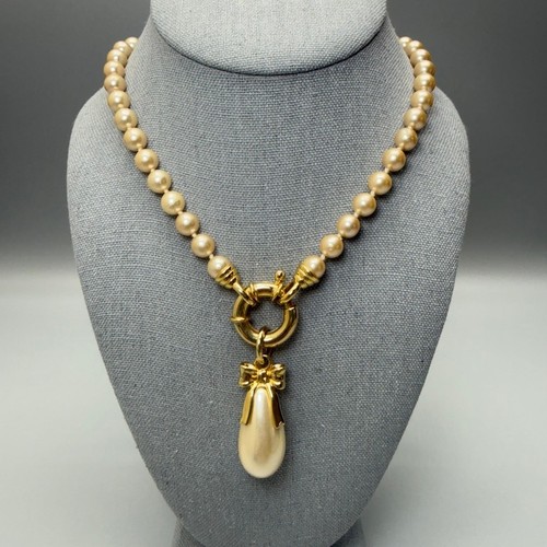 Vintage Faux Pearl Oversized Oversized Gold Tone Bow Pendant Beaded Necklace 29" Opera Long 90s Chic Good preloved vintage condition. Thank you for shopping with PebbleAndSilk! We hope you enjoy our collection of fashion, finds, curiosities, and essentials. APPX MEASUREMENTS ARE LOCATED IN THE PHOTOS. PLEASE COMPARE THEM TO SOMETHING YOU ALREADY OWN FOR PRECISE FIT/SIZING. I do not deep clean vintage jewelry to avoid damage, and I do not include earring backs unless they are in excellent condition for hygiene reasons. SHIPPING POLICY I ship on Mondays, Wednesdays, and Fridays. Keywords: bead necklace, vintage accessory, jewelry, fashion necklace, statement necklace, bead jewelry, gift for her, accent
