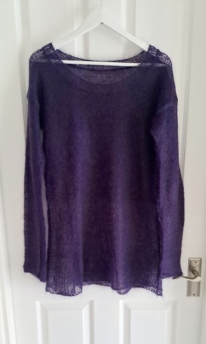 Handmade Mohair Loose Knit Sweater Sheer Jumper Hand Knitted Scoop Neck Purple size L -XL New without tags. High-quality very soft lightweight jumper in beautiful purple colour. Please see the measurements for a size reference. It will fit to sizes UK 14-16 Please see the measurements for a size reference Measurements approx. flat lay: -Pit to pit: 22" -Shoulder: 5.5" -Length on the back hem to hem : 23.5" Please ask if you have any questions at all. Please check my other items. I have a good selection of high-quality clothing for sale. Smoke free house. Thank you for stopping by. J45060 J4060 OC24250000
