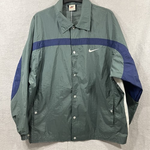 Vtg Nike Logo Snap Button Windbreaker size XL Lightweight Check Warm Up Jacket 90s Y2K
