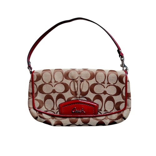 Signature Convertible Large Flap Wristlet Clutch Purse Beige Red VTG Y2K