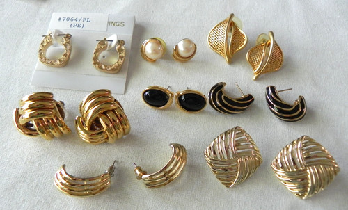 Sale is for a lot of eight (8) pairs of gold-tone pierced earrings. All of the earrings are in very good pre-owned condition with no wear, scratches, tarnish, or spotting. All are shiny bright gold-tone.