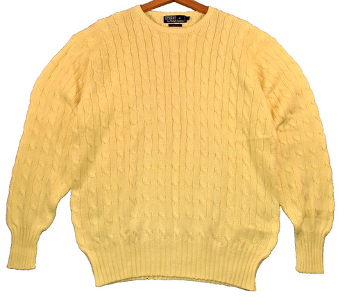 Vintage Polo Cable Knit Sweater Yellow Cotton Crewneck Men L