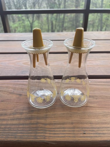 The Vintage MCM Pyrex Butterfly Gold Salt & Pepper Shakers Set is a charming and decorative piece from the 1970s. Made of lightweight, glossy glass with a floral pattern and butterfly theme, this set of two round shakers is a perfect addition to any Mid-Century Modern kitchen. Featuring a pressed glass production style, these shakers are not only functional but also stylish, with a lid included for easy storage. Sourced from the United States by the popular brand PYREX, these salt and pepper shakers are a nostalgic and unique find for collectors of vintage kitchen decor. USED PREOWNED