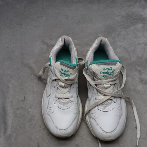 Few blemish These classic walking sneakers feature a durable leather upper with breathable mesh panels for all day comfort. The DMX cushioning technology provides responsive support with every step while the rubber outsole ensures reliable traction. Teal accents on the tongue and heel add a subtle pop of color to the clean white design. Keywords: Reebok, Walk DMX, walking shoes, sneakers, white, teal, leather, athletic, fitness, comfort, vintage style, retro, chunky, low top, lace up, gym, exercise, casual, footwear, women · Fast Handling Time · Contact us via message for prompt resolution with any issues