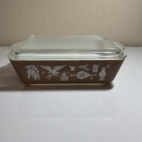 The Pyrex Vintage Early American Refrigerator Casserole Dish is a charming piece with a 1 1/2 Qt capacity and a ribbed lid, perfect for adding a touch of vintage charm to your kitchen collection. Made in the USA in the 1960s, this milk glass dish features an early American design with a glossy finish and a brown color. Ideal for use in both the oven and refrigerator, this casserole dish is a practical and stylish addition to your cookware collection.