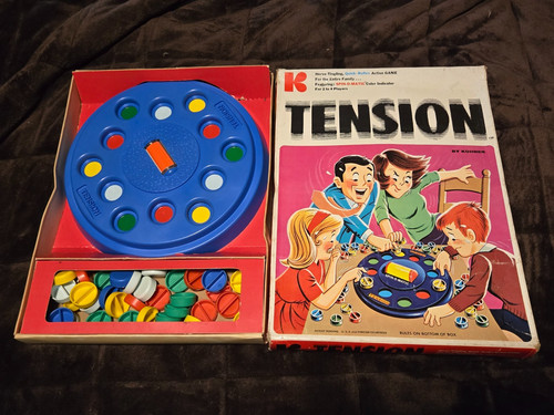 The RARE TENSION vintage board game is a classic piece of American gaming history from the year 1971. This vintage board game is perfect for family game nights, offering hours of entertainment and fun for players of all ages. With its unique gameplay and timeless appeal, this game is sure to become a beloved staple in any family's collection of board games.