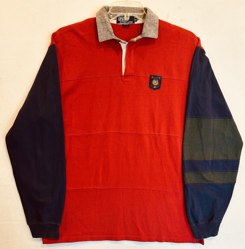 VTG Polo Rugby Shirt USA Made XL Red Crest Patch Colorblock 80s/90s